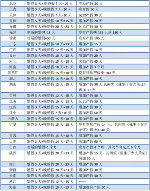 草案通过前晚婚晚育享受到的假期福利。注:自治区信息缺失。