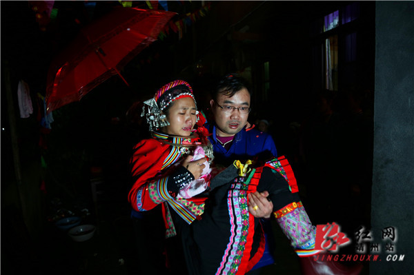 过去的苗族婚礼,新郎不会到女方家迎亲,如今也与时俱进,新郎阿哥抱得美人归。刘杰华摄
