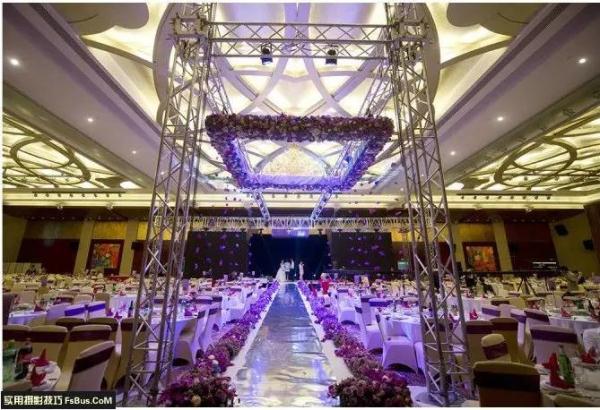 一个很不错也很常见的中国高端婚礼灯光及现场布局图,在每一场仪式彩排的时候,其实也是摄影师挖掘灵感的时刻。而此时的灵感来源,很多时候就是来自于仪式的灯光组合。仔细挖掘灯光组件的搭配,一般都能找到一些不错的拍摄想法及灵感,比如这场,在仪式中我首先查看了灯光的配备,发现镭射灯球可以作为一个很好的亮点,所以我让灯光师吧摇头灯都集中在镭射灯球上,得到了很绚烂的星空效果但是美中不足的是现场其他的光源过于复杂,所以我联系了酒店的工作人员关闭了大厅所有灯光,得到了暗场的效果,在拍摄的时候,犹豫人物本身没有任何补光,所以我让助手用SB900进行轮廓补光,得到如下两张作品。5MZ朵朵婚嫁网_结婚资讯门户|婚纱礼服|婚纱摄影|婚庆公司|蜜月旅行
