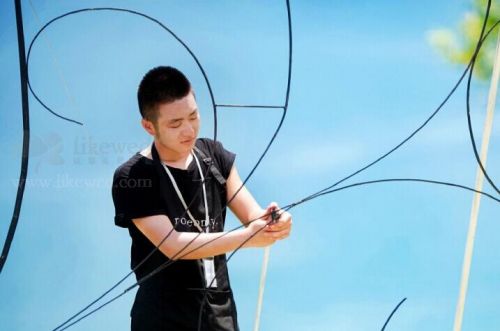 所有这些都需要通过人力打造,而这次参与诗隆婚礼的花艺师团队就有上百人(花艺师在用铁钳凹出背景墙的造型曲线)