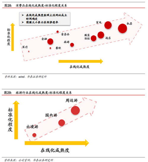 具体到旅业,标准化的程度依次是 机票酒店周边游国内游出境游。
