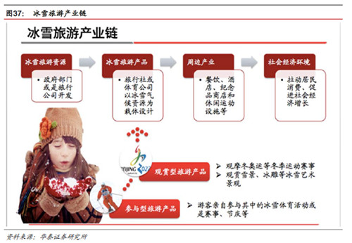 滑雪度假模式:冬奥会2022将会给冰雪旅游产业链上的企业,尤其是滑雪场地综合运营商和旅行社带来的巨大机遇。国内大型滑雪场受限于盈利模式单一(主要来自场地、器材租赁、餐饮、住宿、滑雪技术教授),使得雪场的营业情况表现出明显的季节性,盈利空间有限,盈利水平不高。国际上成熟的雪场则大多是以旅游度假目的地来开发的,从服务内容上看,提供了滑雪、住宿、餐饮、商业、娱乐、会展、房地产等多方面的综合服务。