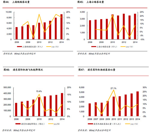 迪士尼为目的地型主题公园,辐射半径较长,对省外、甚至境外游客均有较强吸引力,同样参考世博会期间,7308人次的巨大客流量对上海交通运输业的推动作用,预计迪士尼开园后高铁、航空运输业将受到明显提升。2010年博会带动下,上海铁客运量从2009年的5161万人增长至6095万人,增幅为18.1%;公客运量从2009年的2995万人增长为2010年的3634万人,增幅为21.3%。