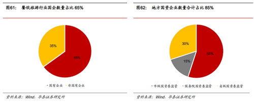 目前A股餐饮旅业上市公司中,实际控制人为国有法人的达19家,实际控制人为国务院国资委的共3家:中青旅、中国国旅、号百控股,其中国国旅受国资委绝对控股;实际控制人为省级或直辖市国资委监管的共6家:金陵饭店、华天酒店、云南旅游、全聚德、首旅酒店、锦江股份;而实际控制人为市级国资委的共计10家。