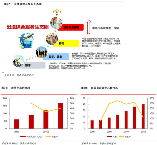 以出境教育服务市场为例,中国目前存在约百亿级别的海外游学市场以及千亿级别的留学服务市场。